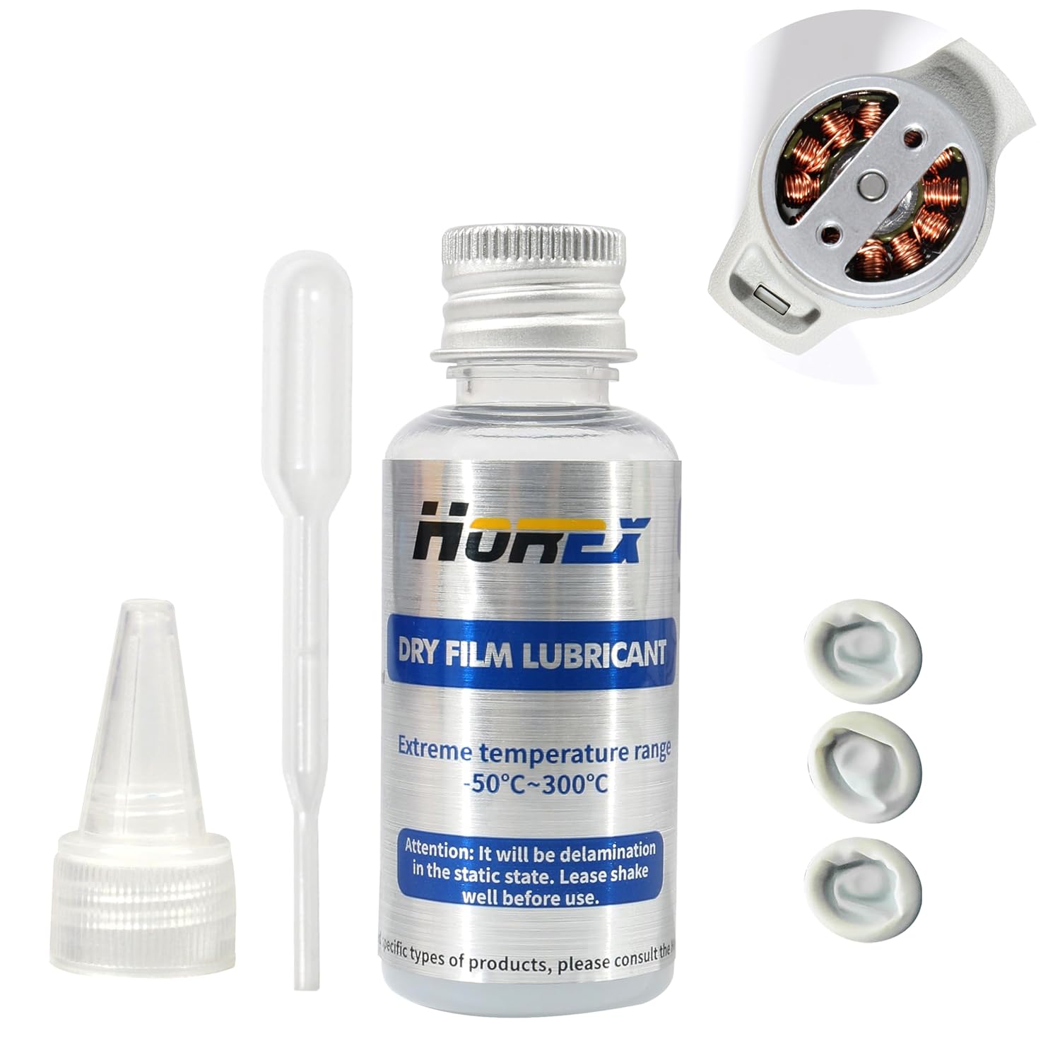 - Innovative Liquid Application System – Unlike traditional spray lubricants, Horex’s precision liquid formula with included dropper or needle-tip nozzle enables targeted dosing to small drone components (e.g., propeller, motor shafts, bearing races). It only takes a few seconds after applying to the parts to evaporate the liquid and leaving a thin layer of lubricating oil film, which is very convenient.
